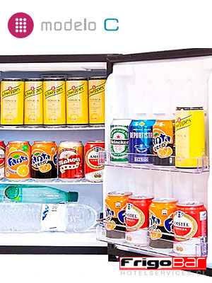 Los minibares de compresor C trabajan con un sistema de compresión perfectamente ajustado para mantener la temperatura óptima de refrigeración de las bebidas y snacks del minibar.