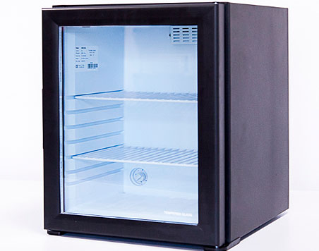 Minibar de compresión silencioso, adaptado a las necesidades de los hoteles que buscan un sistema de enfriamiento potente y rápido. Eficiencia A++